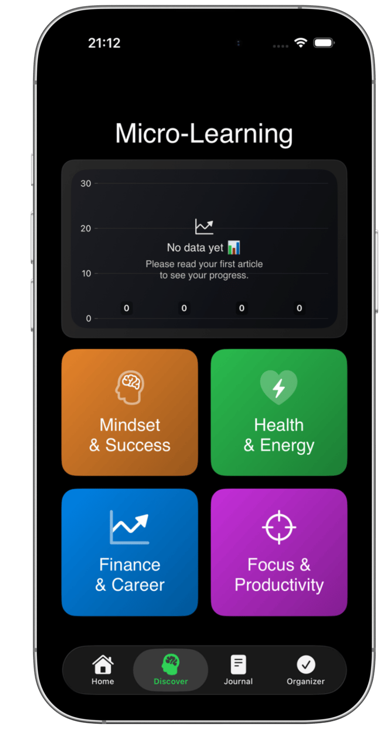 Every feature — from daily reflection to goal setting to microlearning — is built on scientifically proven principles that strengthen motivation, focus, and wellbeing over the long term.